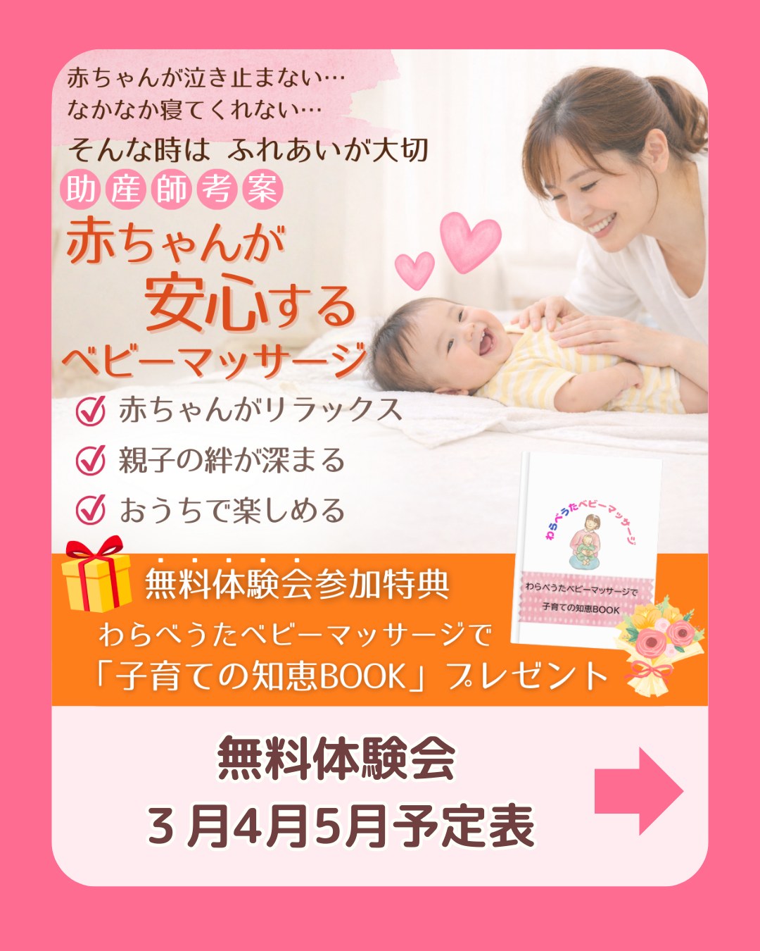 こんなお悩みありませんか? 赤ちゃんが泣きやまない 夜なかなか寝ない 初めての育児で不安そんなママに助産師が考案したわらべうたベビーマッサージ歌いながら触れるだけで赤ちゃんが安心します。今だけわらべうたベビーマッサージで子育ての知恵BOOK無料プレゼント 3月の体験会・3/31(火)11:00〜 4月の体験会・4/9(金)11:00〜・4/28(火)11:00〜 5月の体験会・5/11(月)11:00〜・5/28(木)11:00〜 まずは気軽に体験してみませんか? お申込みはプロフィールのリンクから#ベビーマッサージ #無料体験会 #オンライン@MomokaIiyama n_yoko supa67101 @minawarawa @kumikodktsk@pure_baby_25 warababy @babyma_genkikko @pufflan101 @akane_sato_labo  @tosichanclub @nanairo.rythmique @honomi_josanin @minawarawa @makia_egypt_kidssmile