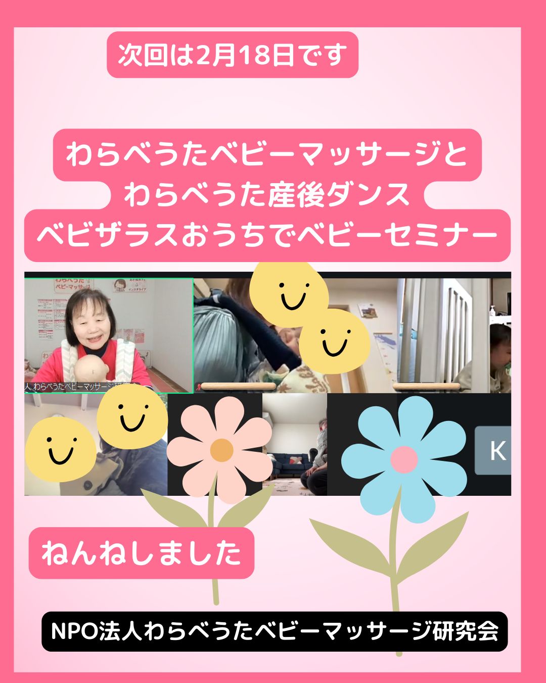 1月16日 午後からの担当をさせていただきました「ベビーザらスおうちでベビーセミナー」久しぶりにわらべうた産後ダンスをしました。踊っているのは10分ほどですが赤ちゃんは寝てしまいましたね。すごい効果ですね。次回は2月18日です 午前と午後とありますぜひご参加お待ちしております オンライン無料体験会もございますこちらは1月23日2月6日にございますプロフィール 5番よりお申込みお願いします招待状を送ります。プロフィール 6番よりお申込みお待ちしております招待状を送ります。#わらべうた#産後ダンス#子育て