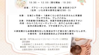 わらべうたベビーマッサージ 第15回震災チャリティを鹿児島で開催いたします!日程:2026年3月10日(火)時間:10時30分~12時00分(受付開始10時20分)場所:Fアリーナいちき串木野 2階 多目的フロア(いちき串木野市生福5298-3)ぜひ遊びに来てくださいね#鹿児島#震災チャリティ#わらべうたベビーマッサージ#子育てママ@MomokaIiyama @minawarawa @kumikodktsk @warabebima @akemiokuda @miyuki_kojimama
