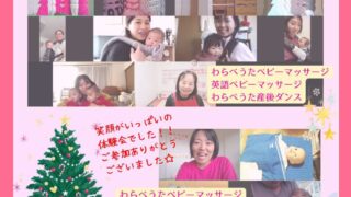 わらべうたベビーマッサージ 2025.12.3☆オンライン無料体験会☆12月に入り、くぐっと寒くなりましたが体験会はみんなの笑顔で心も体もぽかぽかになりました♡午前の部はわらべうたベビーマッサージ&英語ベビーマッサージ、わらべうた産後ダンス!!午後の部は中国語バージョンもご紹介しました!!午前9組、午後1組の皆さんと楽しい時間♪わらべうたの手遊びの後は、いないいないばぁをしながら「わらべうたベビーマッサージ」の良いところをご紹介しました。実際のマッサージタイムではゆったりママにマッサージをしてもらっているお子さんや、手足をパタパタさせて楽しそうにしているお子さんもいらっしゃってお子さんの様子に合わせてねんねやお座りで楽しんでいただきました!産後ダンスではサンバのリズムに合わせてステップを踏んで踊ったので、体もぽかぽか♡体操では、じんわりインナーマッスルも鍛えていきますよ〜心地よい揺れで、眠ってしまった赤ちゃんも♡抱っこで寝かしつけている方には、抱っこしながら体力作りや骨盤ケアができる産後ダンスが特におすすめです♪おしゃべりタイムでは、抱っこで寝た後に布団におろす時のポイントを奥田先生が教えてくださったり、双子ちゃんママからは2人の寝かしつけ方をお話していただきました!!他にも、「わらべうたベビーマッサージで子どもがたくさん笑ってくれて、本当に今日参加できて良かったです♡」という嬉し感想もいただきました!!寒くなるとお外に出るのも大変ですよね。でも家で何して過ごしたらいいの??って悩まれている方もよく聞きます。そんな時にはぜひ、わらべうたベビーマッサージで「触れて、見つめて、語りかけて」あそびながら親子の絆も免疫力もアップさせていきましょう♪ありがとうございました☆担当:佐藤美奈#子育て #自宅でできる #赤ちゃん #親子の絆作り #わらべうた @MomokaIiyama n_yoko supa67101 @minawarawa @kumikodktsk@babyimonica @rico_babym @hug.huwari @yumiebebima @warababyma_mattoyo @genkidscreator @ciel_arko @warababy_laulele @babysigns_chah_chan @himawarijyosanin @nomu_am